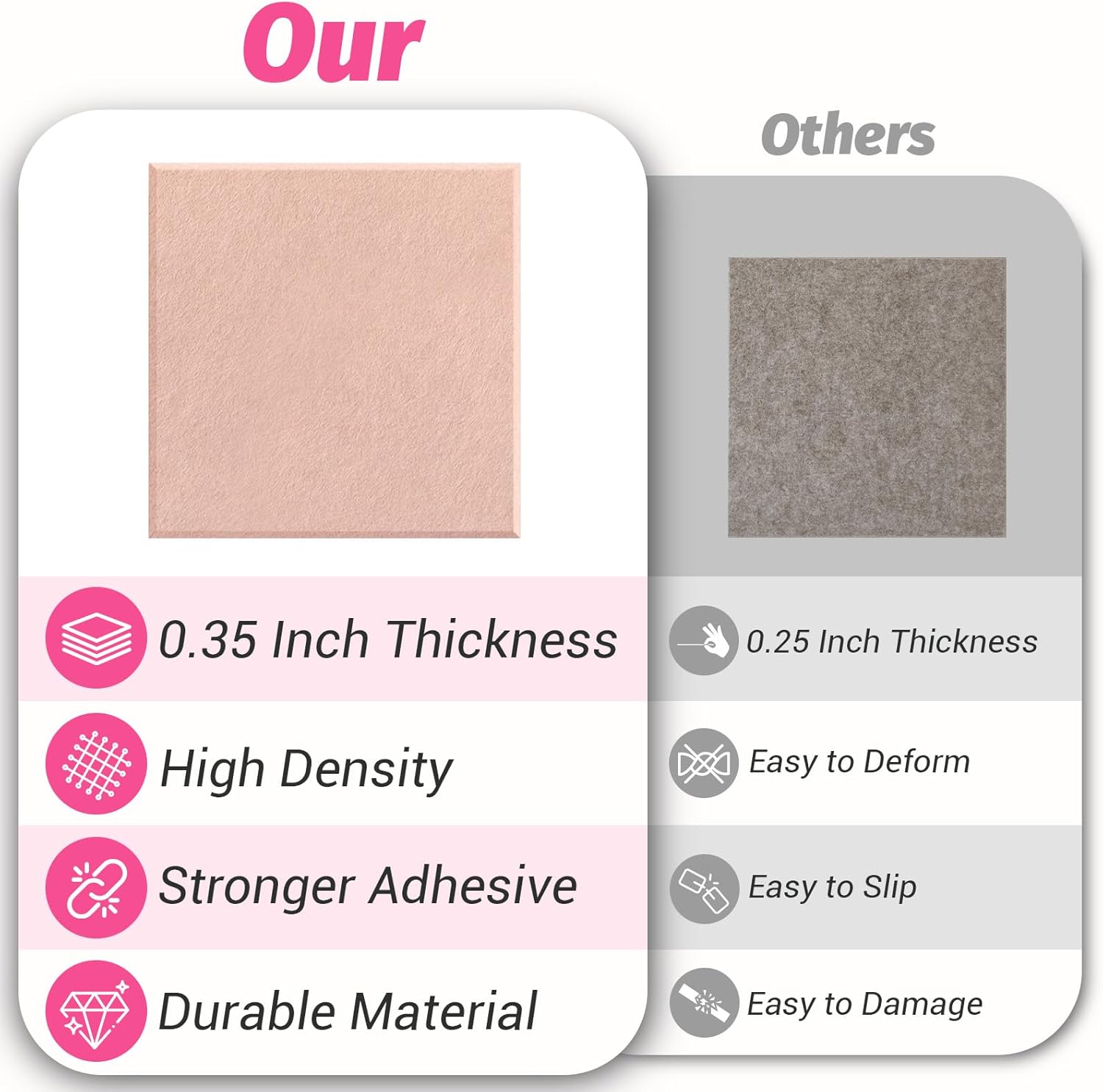 Easy to Install: High-density felt panels are very easy to install. At the same time, we are also equipped with 72 pcs high-viscosity traceless adhesives and 30 pcs push pins, which can be easily fixed on any smooth wall without any additional tools, ensuring beautiful and stylish without causing any damage to the wall