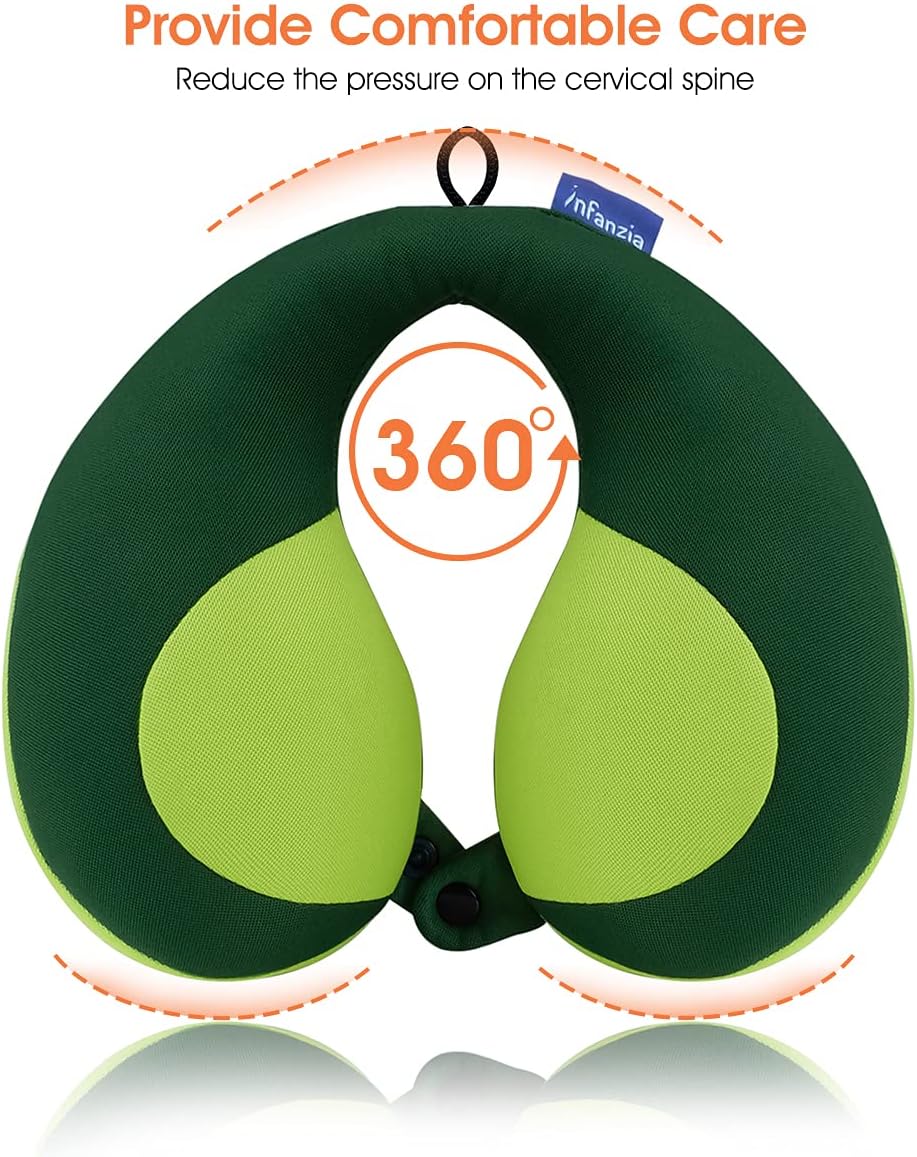 【Original Design】:Bilateral Thickened and widened, full support in side rear, thin in the neck pillow back so that it can helps Support Head and Neck. INFANZIA kids travel pillow with SNAP and BUCKLE, you can hang on any hooks or secure to a bag, suitcase, backpack or luggage without taking up extra space