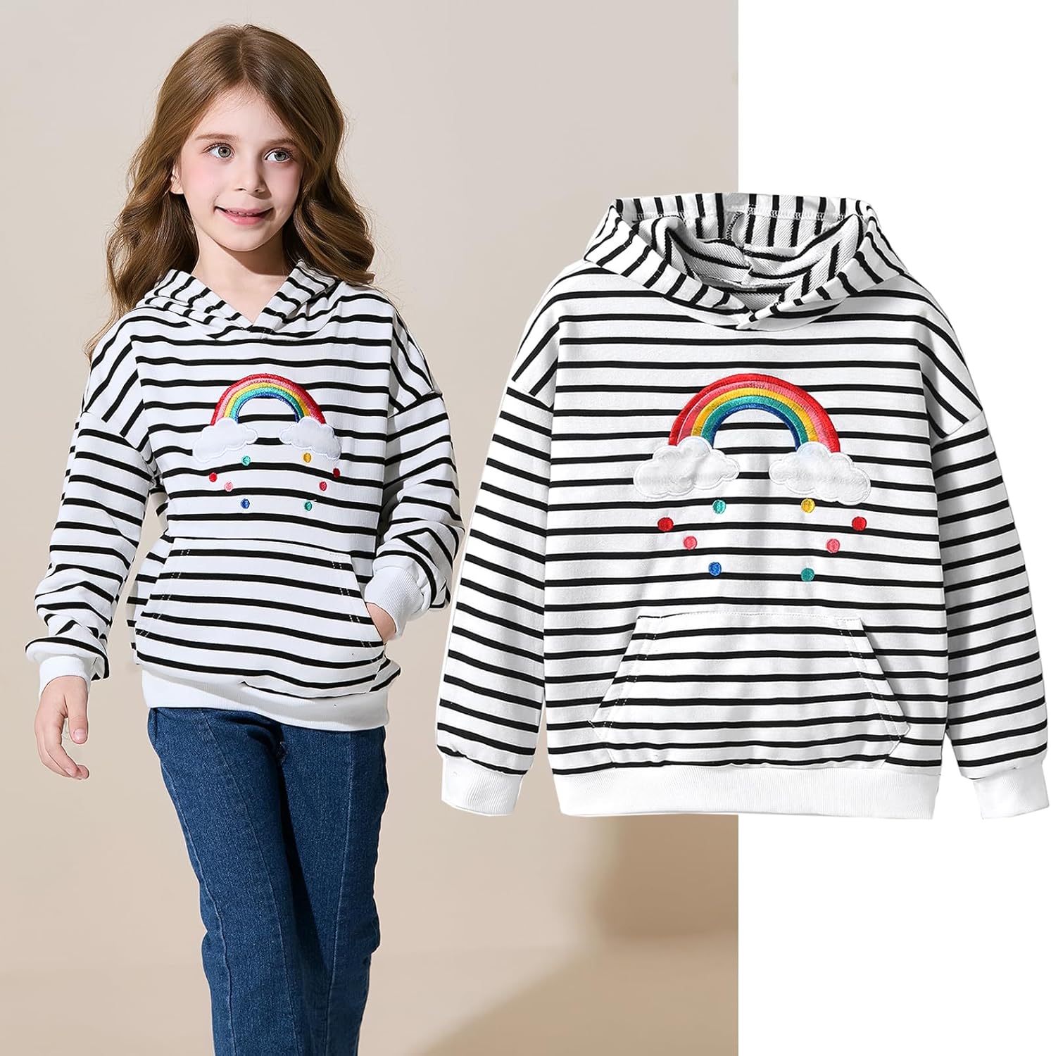My daughter and I love the color and print on this sweatshirt . We got the Dinosaur Unicorn Hoodie Pullover. I sized up two sizes from her normal size so she could wear this a few years. However, when I washed and dried it, it shrunk A LOT, in length especially, and while it fits for now she will likely grow out of it by next year. She can’t wear the hood because it shrunk so much it pulls the whole sweatshirt up. I think the length proportion in the hood isn’t quite right. I suggest sizing up two sizes at least in these sweatshirts. And don’t dry on high unless you want it to shrink. The material is a light weight cotton but very soft.