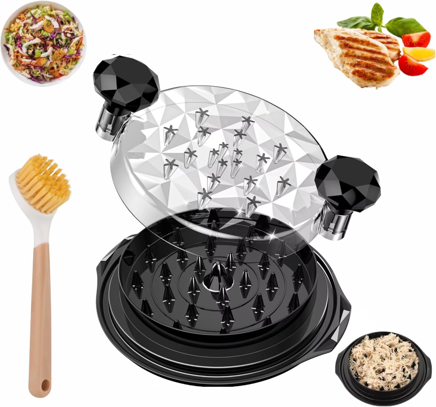 I recently got my hands on this fantastic meat shredder, and itâs quickly become one of my favorite kitchen tools! The 10-inch base is a game-changerâunlike smaller shredders, this one lets me tackle a big batch of cooked meat all at once. I just pop in some chicken breast, lock the lid, and give it a twist. In seconds, Iâve got perfectly shredded meat ready for tacos, salads, or whatever Iâm craving. Itâs so fast and efficient that itâs cut my meal prep time way down.Cleanup is a breeze, which is a huge plus for me. Itâs made from BPA-free, food-safe plastic and is dishwasher-safe (top rack), but it also comes with a sturdy bristled brush for hand washing if I need it done quick. Honestly, itâs one of those healthy eating tools that makes cooking feel less like a chore. The diamond-shaped handles are another standout featureâthey give me a solid, comfortable grip, and the lid locks on tight with even pressure, so everything stays secure while I twist.This shredder isnât just for chicken either. Iâve used it for pulled pork, beef, and even veggies like lettuce for saladsâitâs super versatile. Whether Iâm prepping meals for the week, sticking to my fitness diet, or even making some homemade pet food, this gadget delivers. Plus, the upgraded 3M adhesive anti-slip strips keep it rock steady on my counter, so thereâs no slipping or mess to deal with.If youâre looking for a reliable, easy-to-use kitchen gadget that makes shredding fun and fast, this is it. Itâs one of those cool tools that actually lives up to the hypeâhighly recommend!