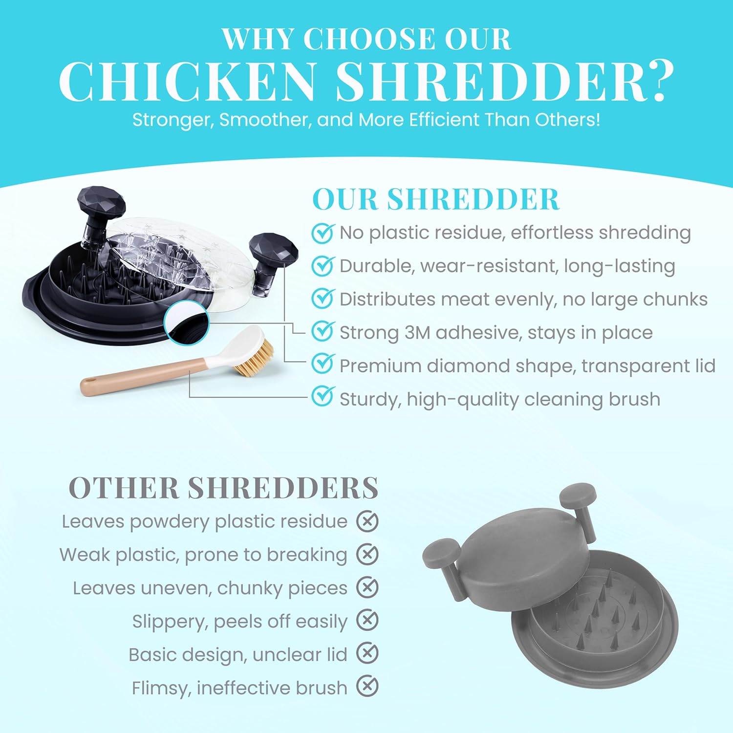 🐔🍗【Enhanced 10” Chicken Shredder】 This upgraded pro chicken shredder is designed with improved inner spikes that are sharper and sturdier for faster, effortless shredding. The anti-slip rubber base keeps the tool steady and secure during use, while the clear lid lets you watch the shredding process so you can achieve the perfect texture every time.