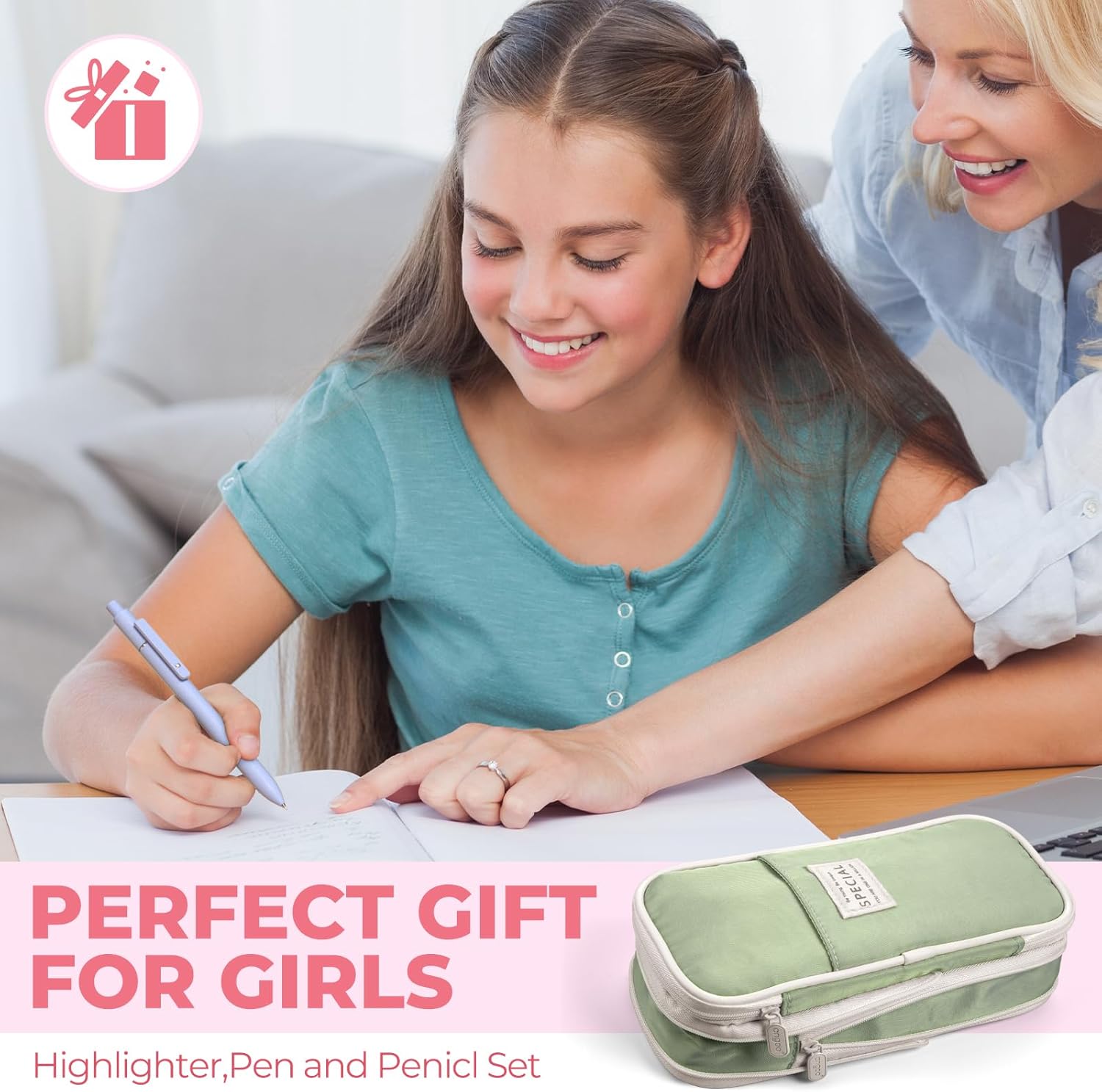 I recently purchased the Nicpro 39 PCS Aesthetic School Supplies set, and it has exceeded my expectations. The variety and quality of items included make it an excellent value for anyone looking to upgrade their stationery collection.Highlights:⢠Comprehensive Set: The kit includes 12 pastel highlighters, 6 mechanical pencils (0.5mm & 0.7mm), 5 black gel pens, along with ample refills for both pens and pencils. The addition of erasers and a durable pencil pouch rounds out the set perfectly.  ⢠Quality Writing Tools: The pens write smoothly without smudging, and the pencils are comfortable to hold, making long writing sessions more manageable. ⢠Spacious Pencil Case: The included pen case is not only aesthetically pleasing but also highly functional, with enough space to store all the supplies and more.Overall, this set is ideal for students, teachers, or anyone who appreciates well-designed, functional stationery. Highly recommend!