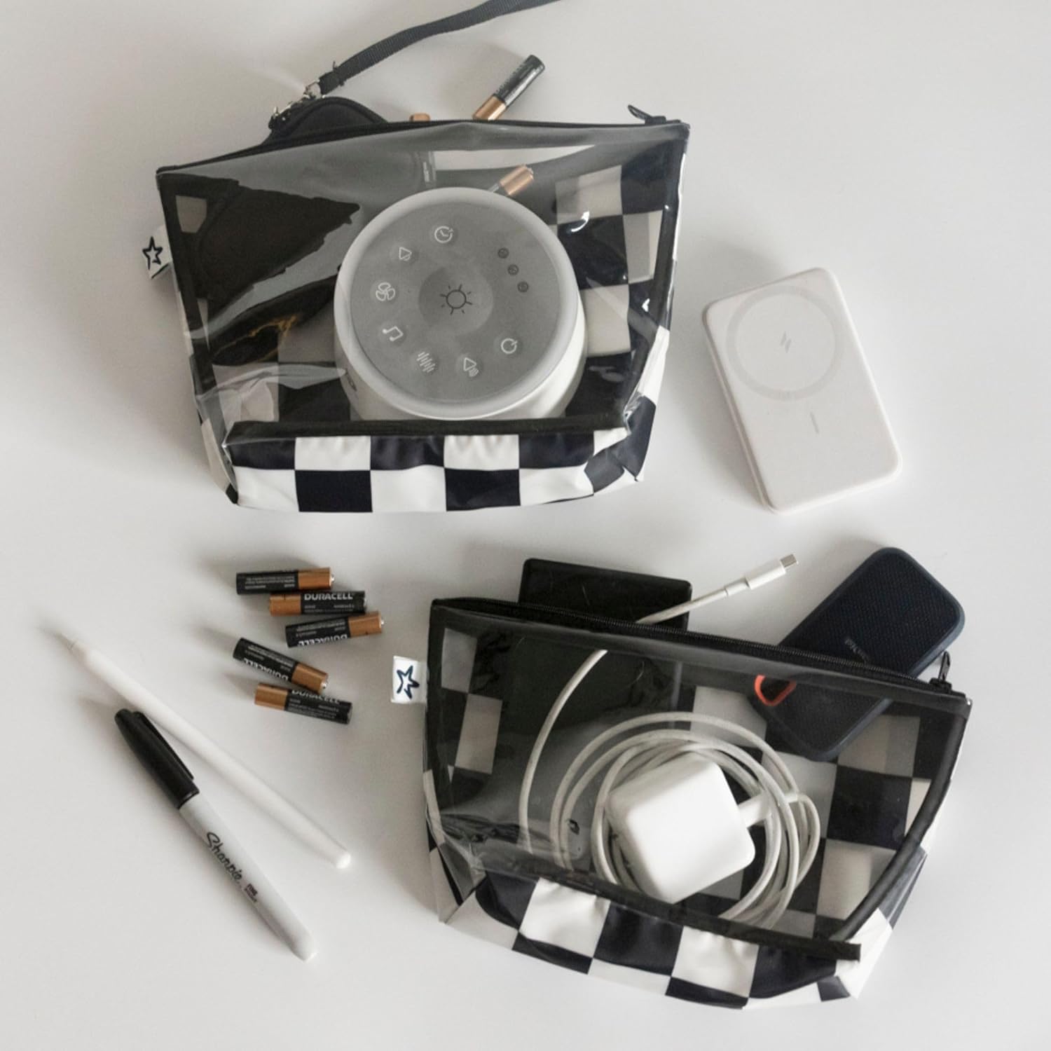 8 reviews for Tiny Twinkle Mess-proof Travel Bags, Airline Compliant, Zipper Closure, Clear Front Pouch, Diaper Bag Packing, Toiletry or Cosmetics Organizer 2 Pack Set (Black Checkers)