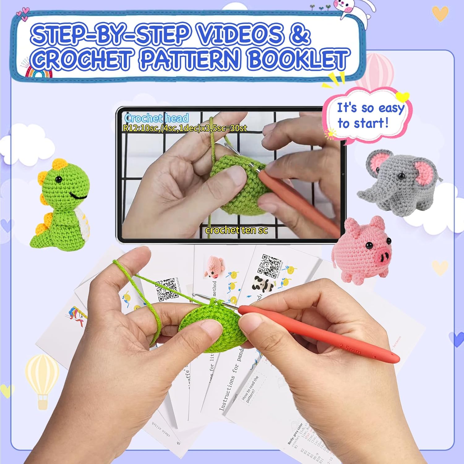 【Perfect for Beginners】This beginner crochet kit for adults and crochet kit for beginners kids includes everything you need to get started. With step-by-step video tutorials, you’ll be crocheting adorable animals in no time!